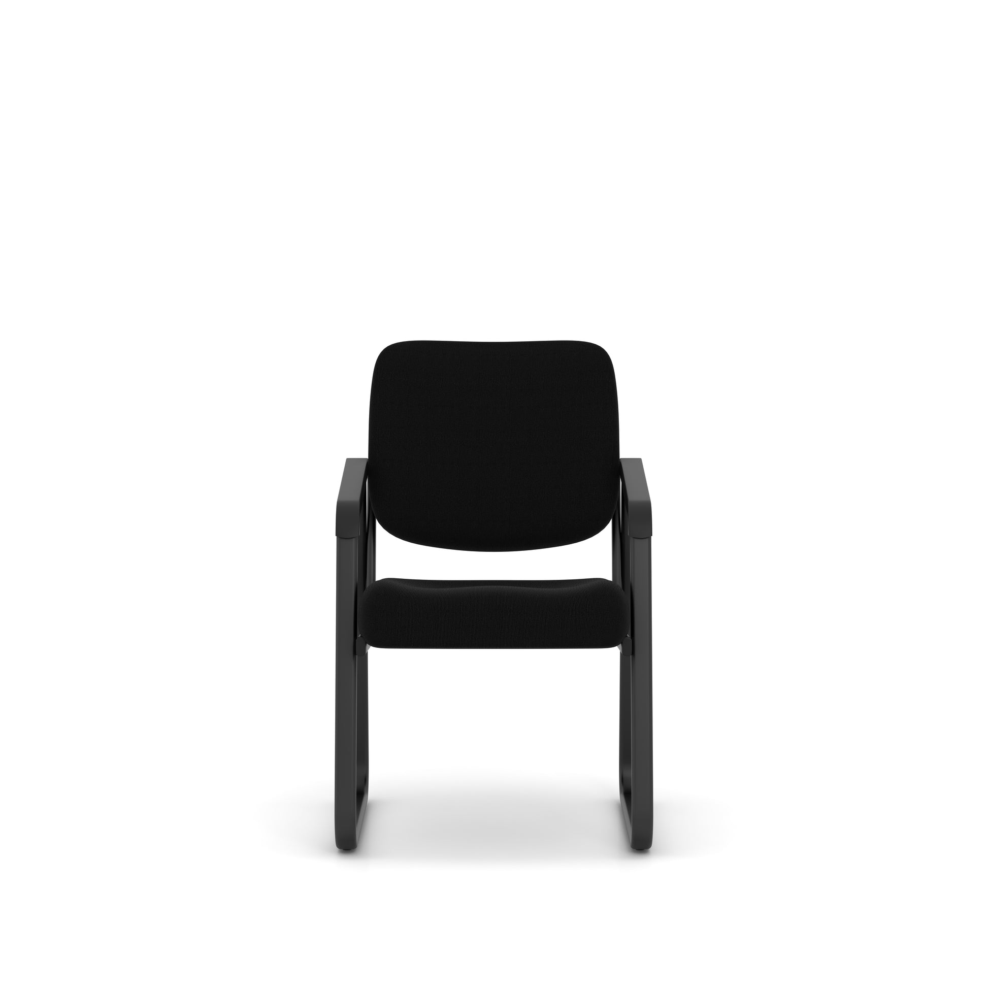 Contemporary guest seating with a modern flair is perfect for guest, lobby, and educational environments. This side chair is available in black leather or black fabric – and compliments other office seating.