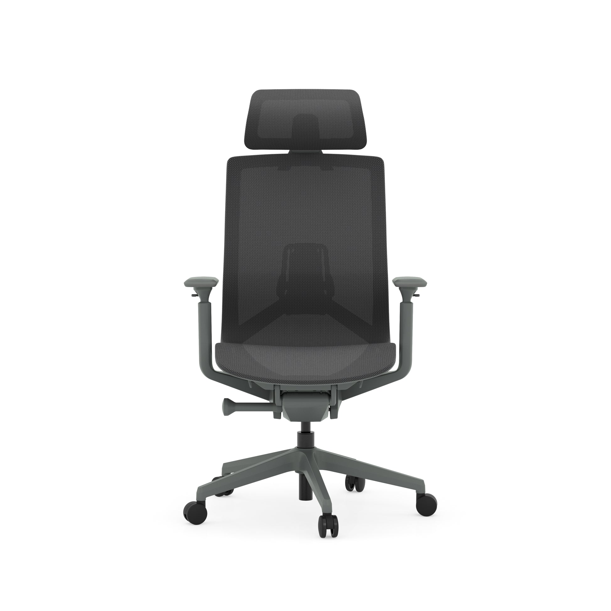 Atlas II Medium Back Chair with Headrest - Adjustable Arms - Dark Gray - 9811GRYDGRY & 981HRDGRY & 9811ARM4DGRY