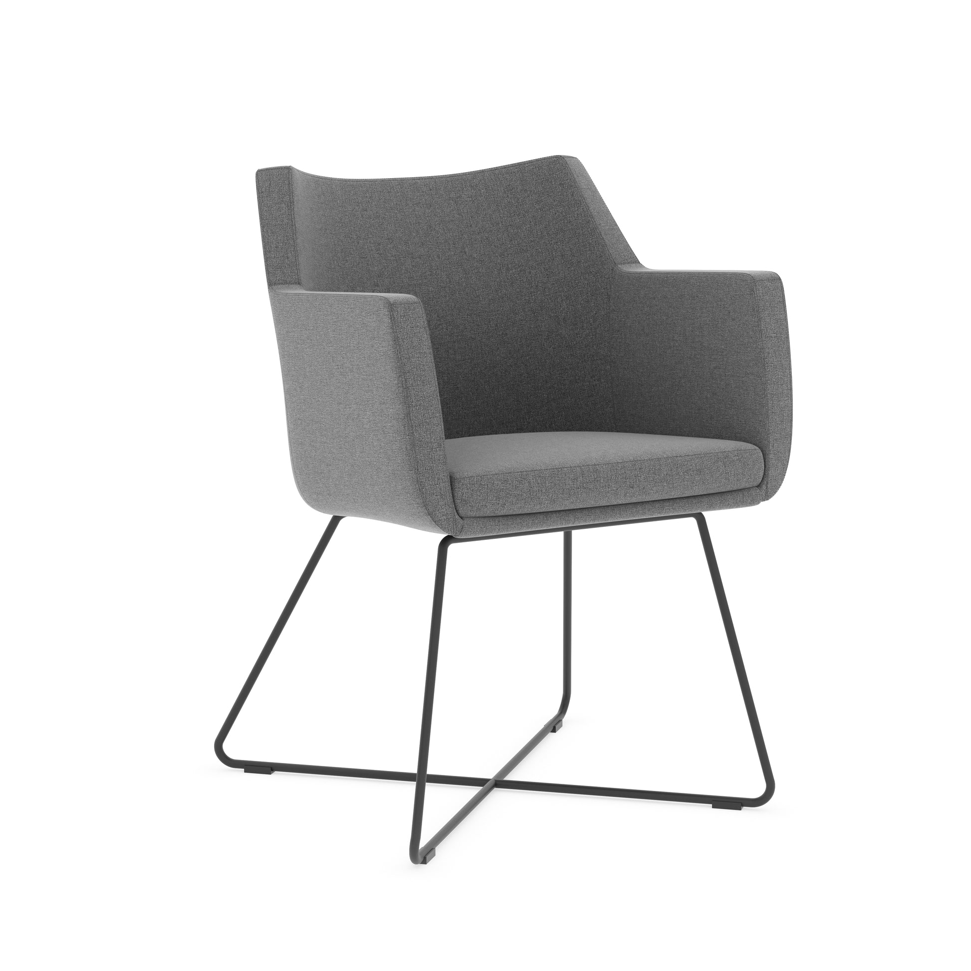 Konfurb Hady Series Medium Back Gray Fabric with Black Cross Sled Base - 77560/29091