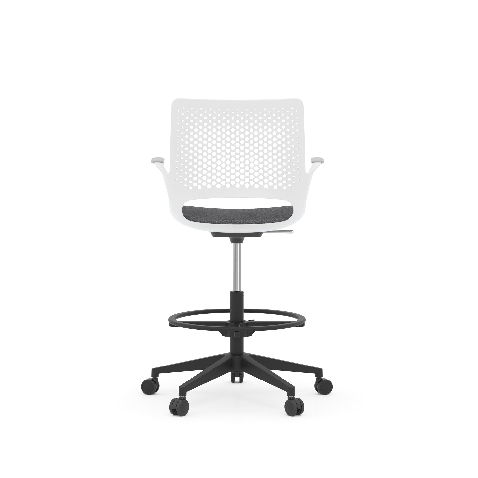 - Black or light gray polypropylene back + seat shell, + charcoal arm pad