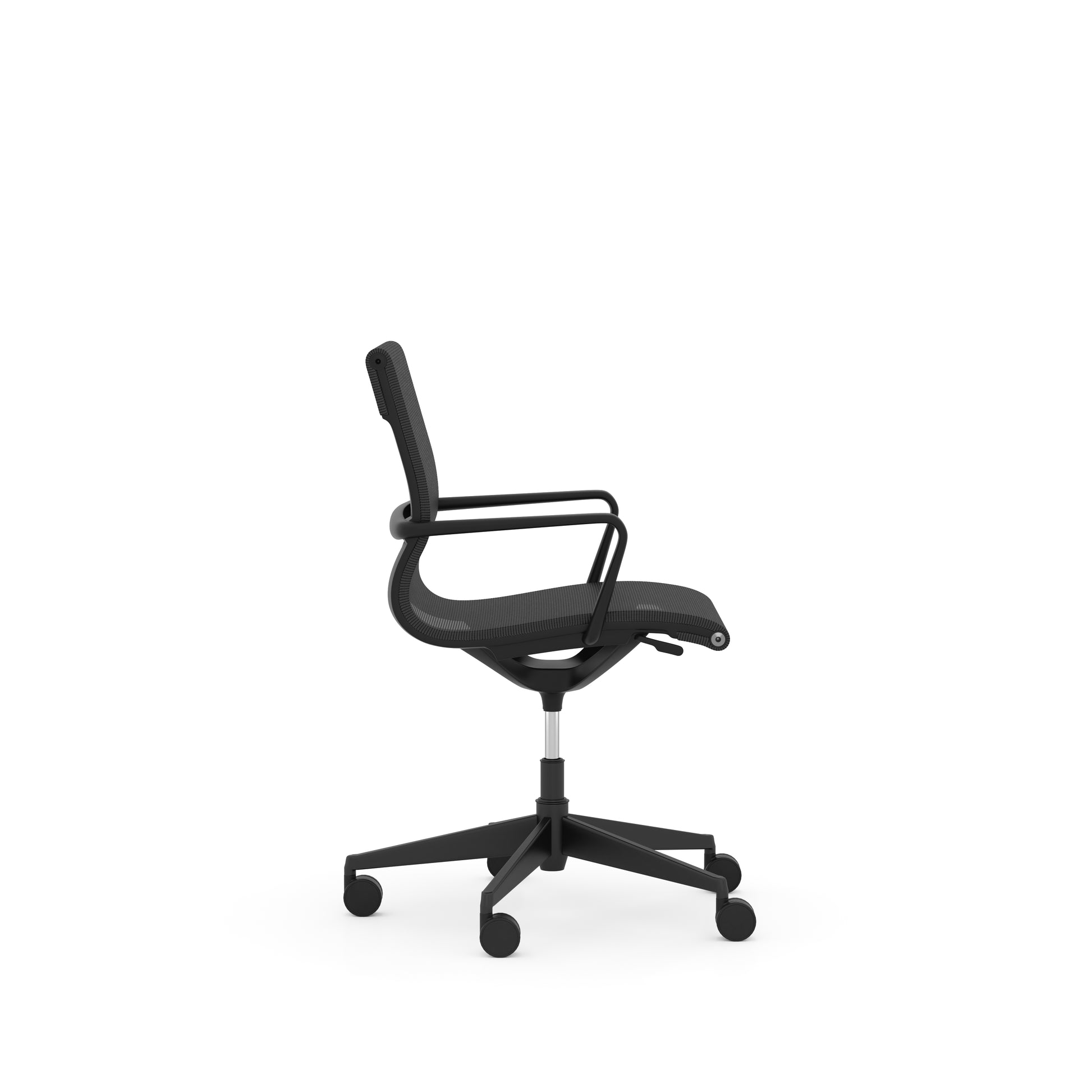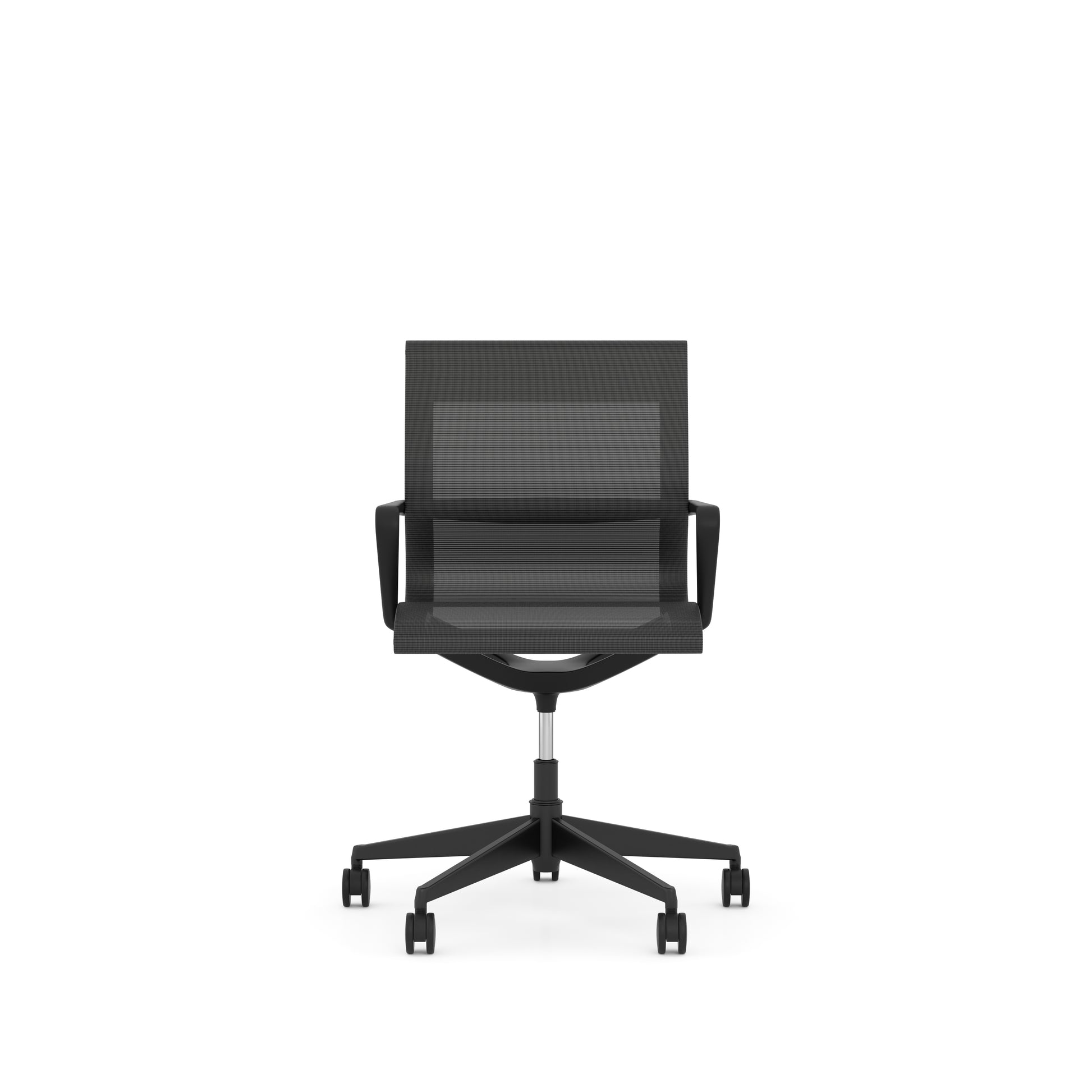 Elegant and on trend management or conference chair with mesh back and seat. The Nova Mesh series is stocked in black mesh on black frame or silver mesh on black frame. Both feature a unique integrated height adjustment control.