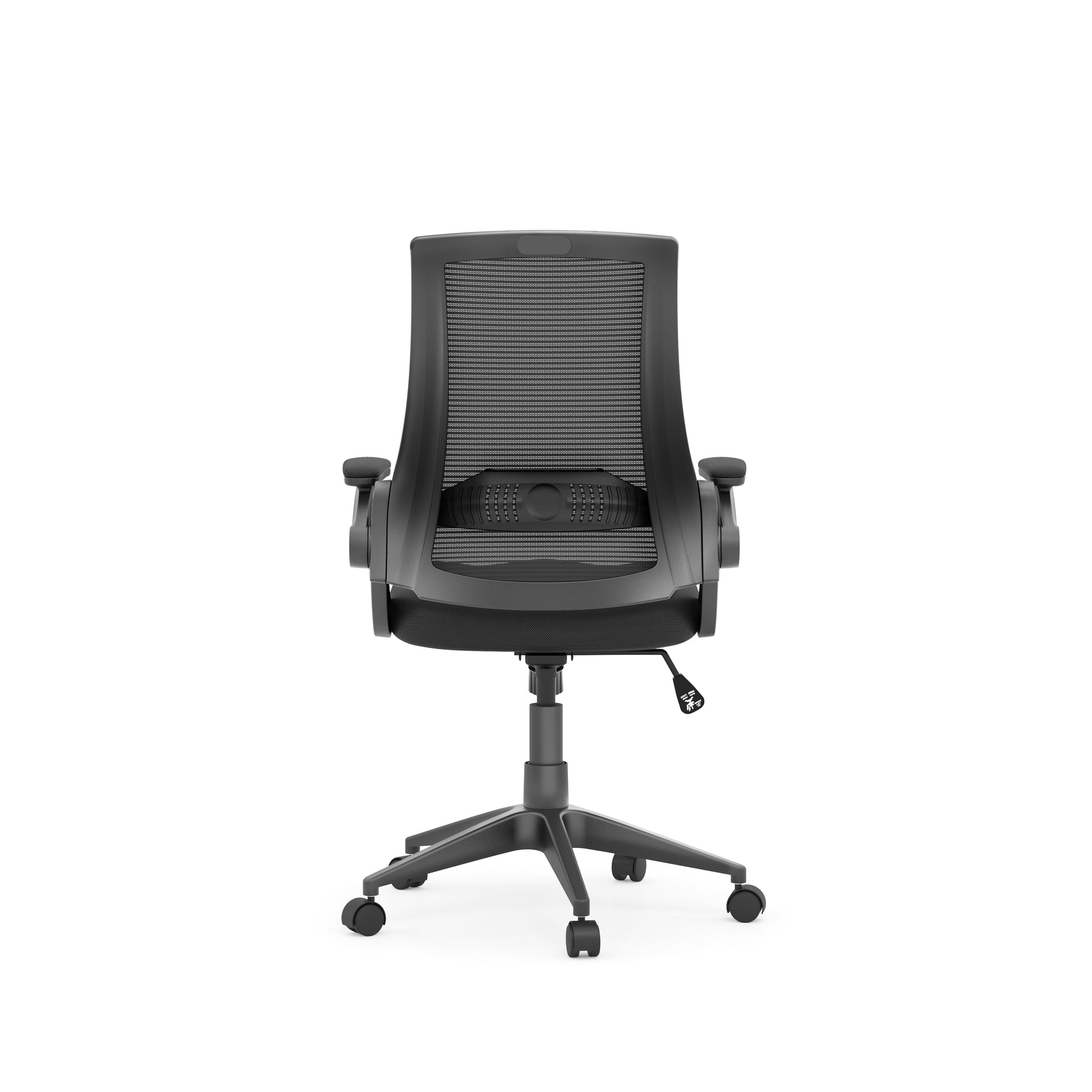 The Sentinel office chair is designed for both comfort and functionality. Featuring a breathable mesh back with adjustable lumbar support, it promotes airflow and ergonomic posture throughout the day. The cushioned seat provides lasting comfort, while the flip-up armrests allow you to conveniently tuck the chair under your desk to save space. With its sleek black design and user-friendly adjustments, the Sentinel is a great addition to any modern workspace.