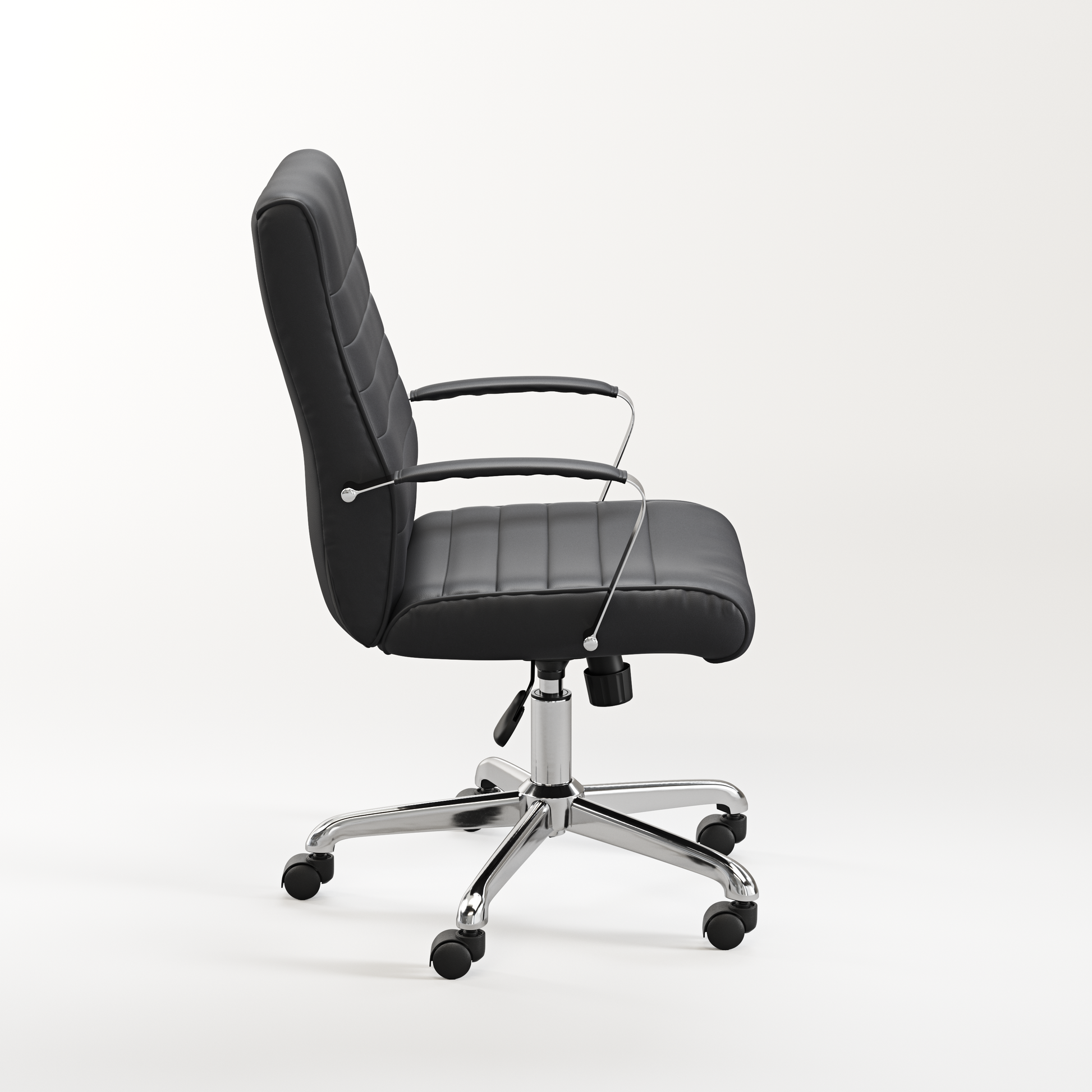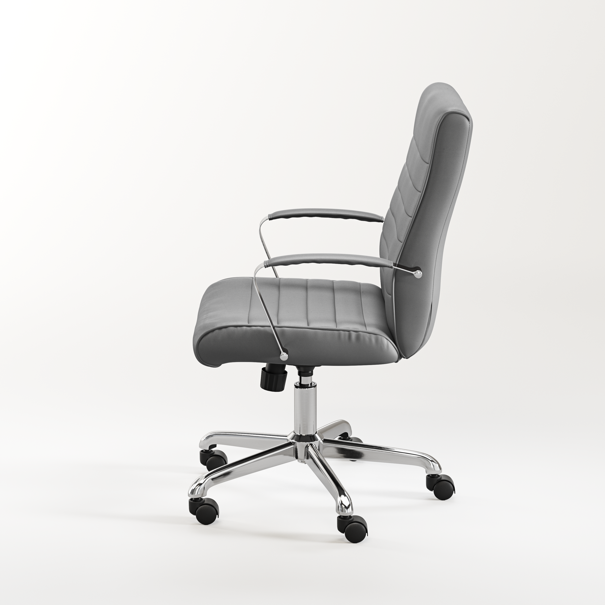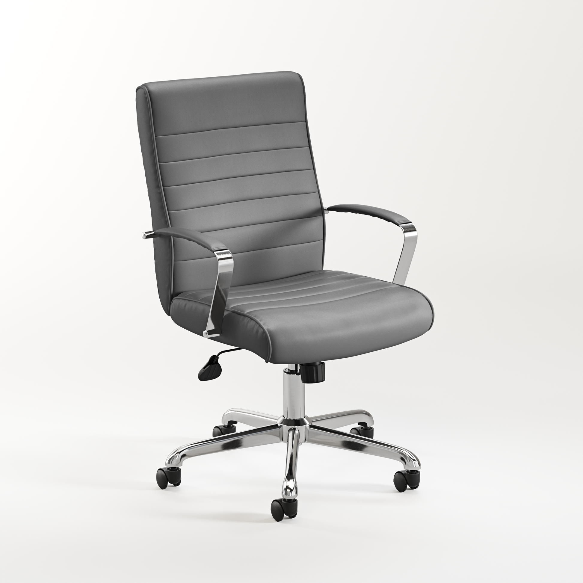The Stratus Chair brings a modern touch to your workspace with its sleek ribbed upholstery and ergonomic design. Thoughtfully crafted for comfort, it includes lumbar support and padded armrests to keep you at ease throughout the day. The chair offers seat height adjustment, tilt tension control, and a secure upright lock, allowing you to find your perfect seating position. Finished with a robust chrome base for stability and smooth-rolling mobility, the Stratus is an elegant yet practical addition to any office or meeting space.