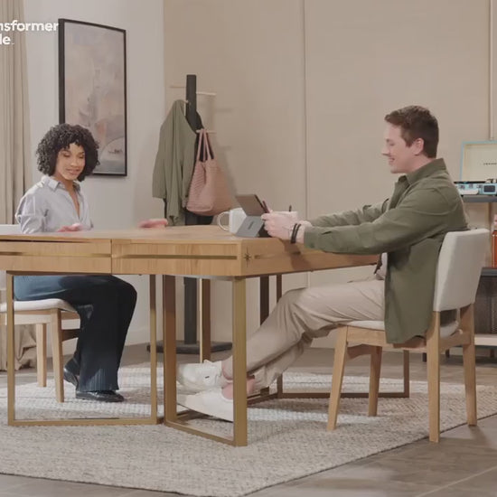 Available in two stunning finishes, including, Scandinavian Oak and Dark Walnut, the Transformer Table to Desk - The Savouring complements any modern home décor. The rich wood tones add a touch of sophistication to your space, while the sleek, contemporary design makes it an ideal fit for any home office. Its adaptability and modern aesthetics make it the perfect table to desk solution, enhancing both productivity and style in your living space.